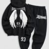 Men’s PARIS Letter Graphic Printed Crew Neck Pullover Sweatshirt And Mountain Pattern Fuzzy Fleece-lined Drawstring Jogger Sweatpants Set – Green